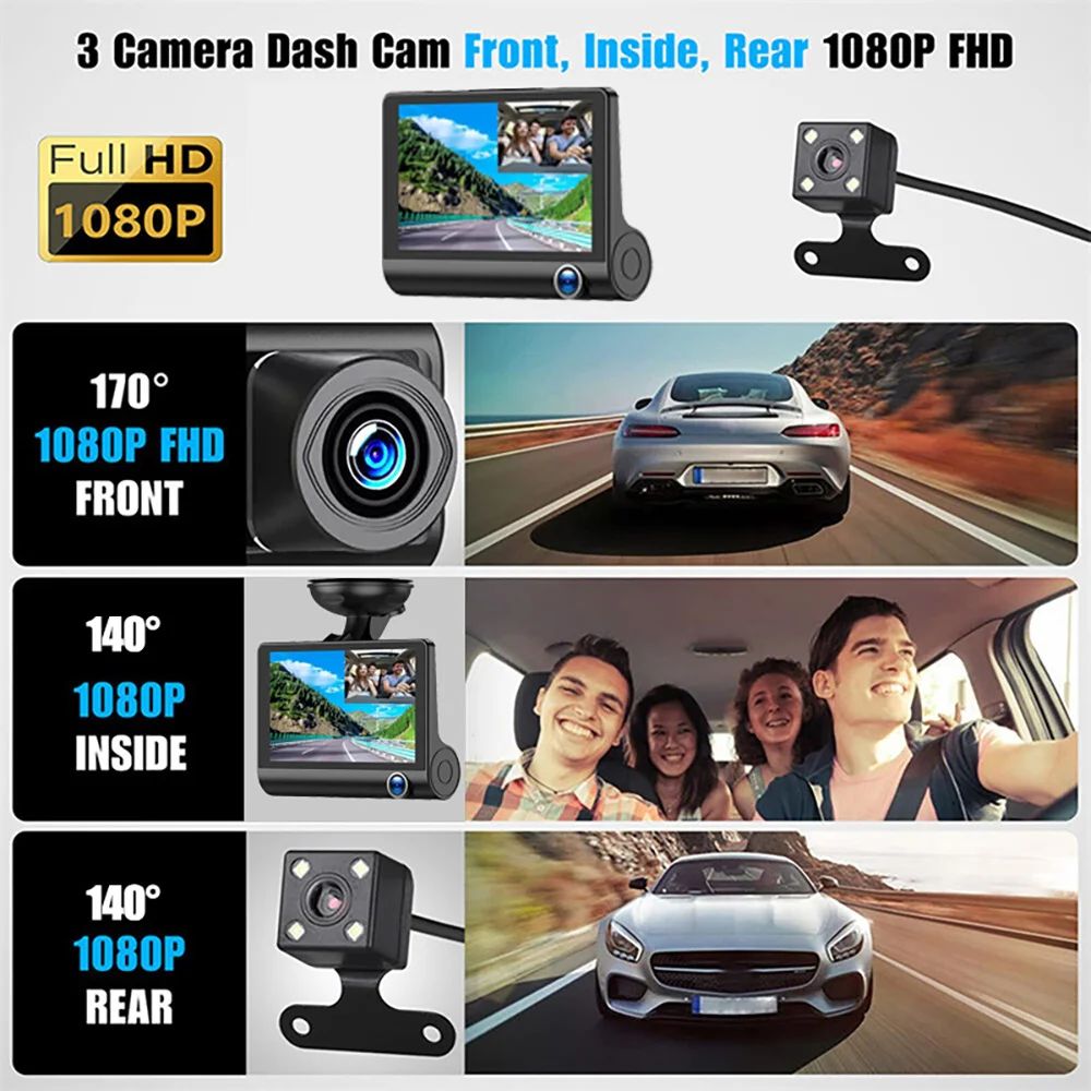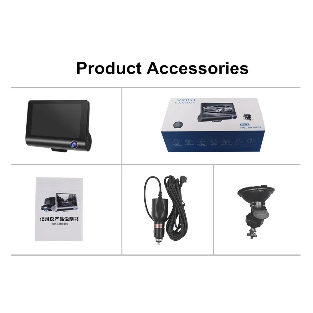 🚗 מצלמת רכב משולשת – DVR 1080P עם מסך 4 אינץ’ ומצלמת רוורס